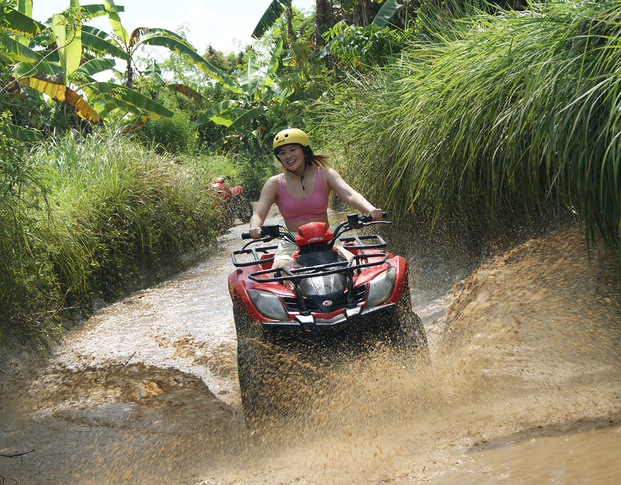 • Feel an adrenaline rush as you ride an ATV through the lush jungle terrain