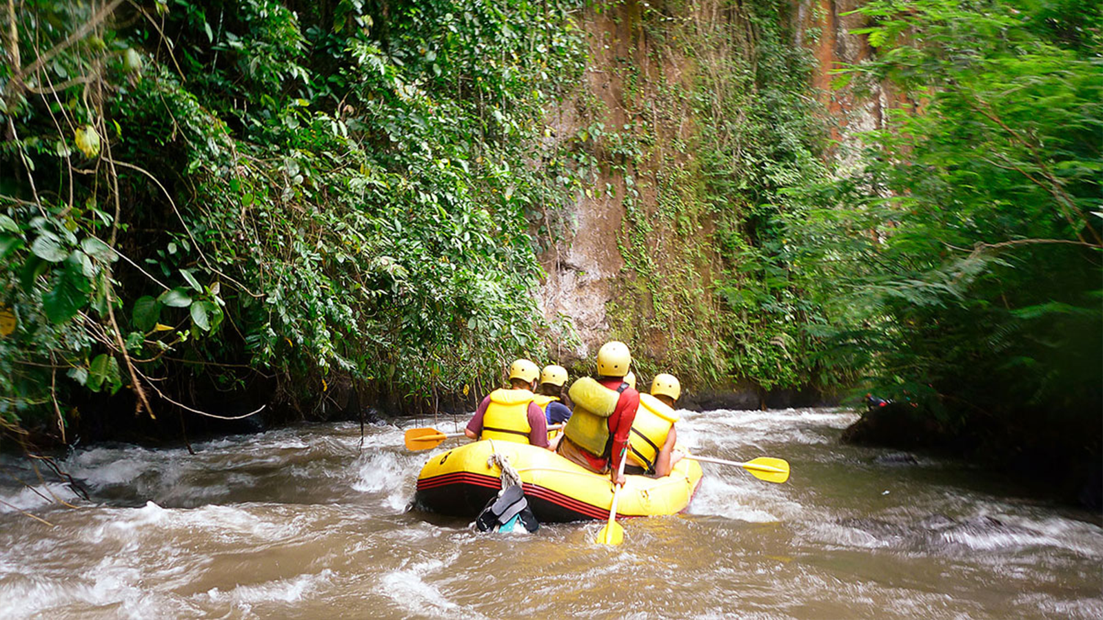 • The rafting package includes safety equipment such as helmets, life jackets, and paddles.